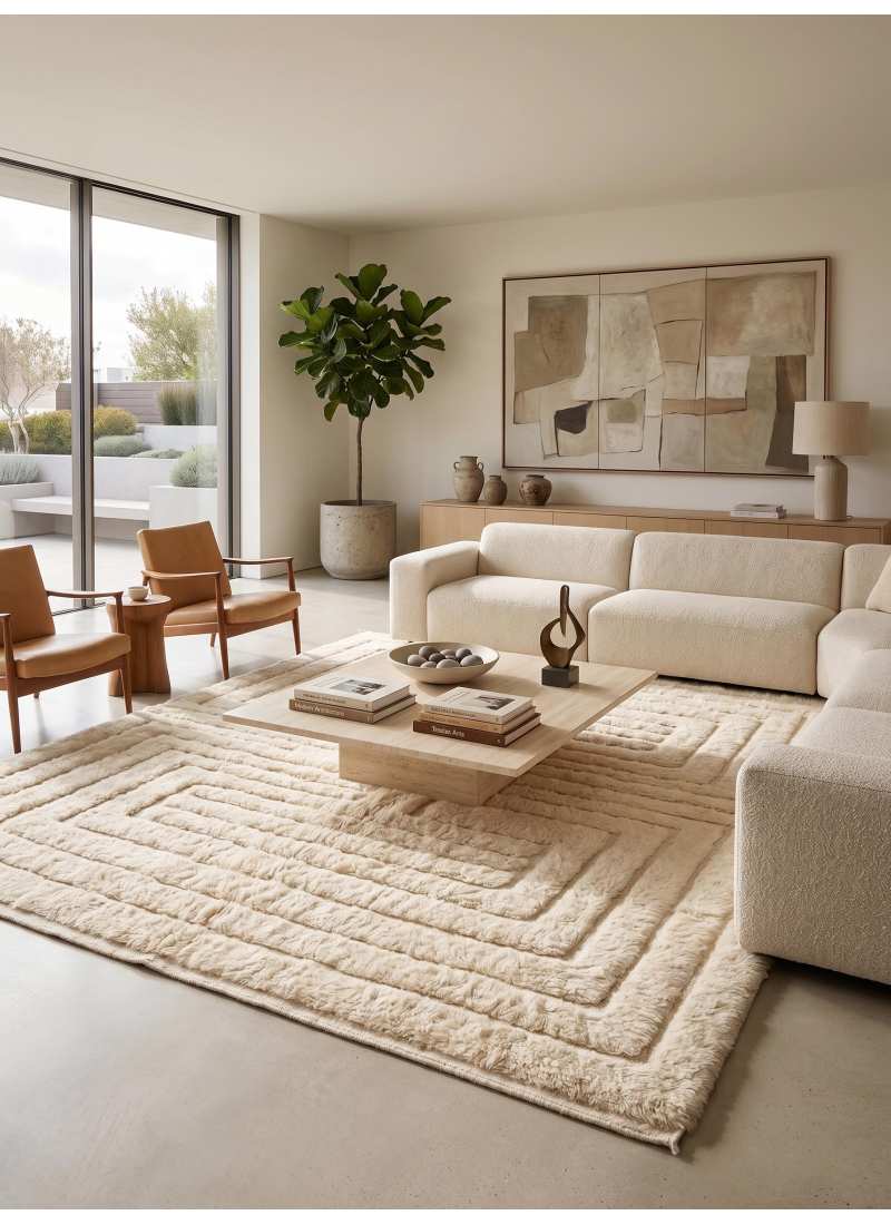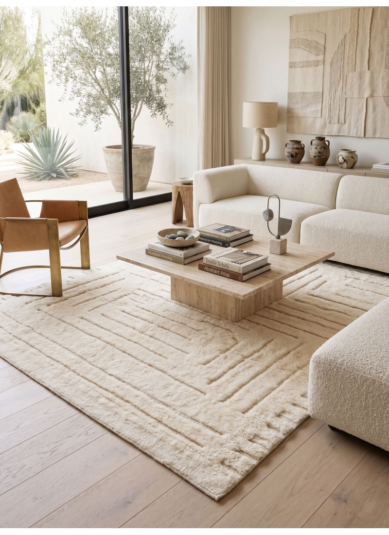Supprimer du panier Liste de souhaits Tapis Mrirt marocain écru - Tapis en laine à motif géométrique labyrinthe sculpté À partir de 324 $ Sublimez votre intérieur avec ce tapis Mrirt marocain écru authentique, tissé à la main. Son motif en relief 3D, composé de blocs horizontaux et...