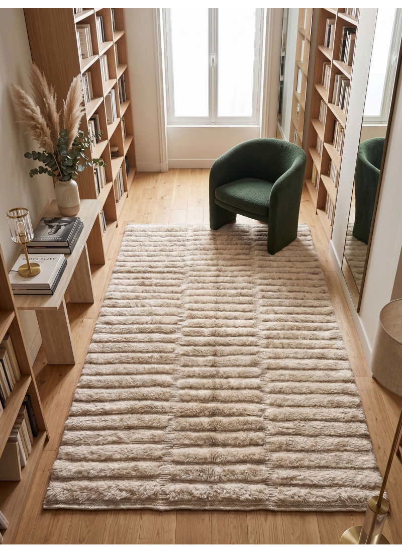 Supprimer du panier Liste de souhaits Tapis Mrirt marocain écru - Tapis en laine à colonnes côtelées sculptées À partir de 324 $ Sublimez votre intérieur avec ce tapis Mrirt marocain écru authentique, tissé à la main. Son motif côtelé en relief sculpté en 3D, réalisé en...