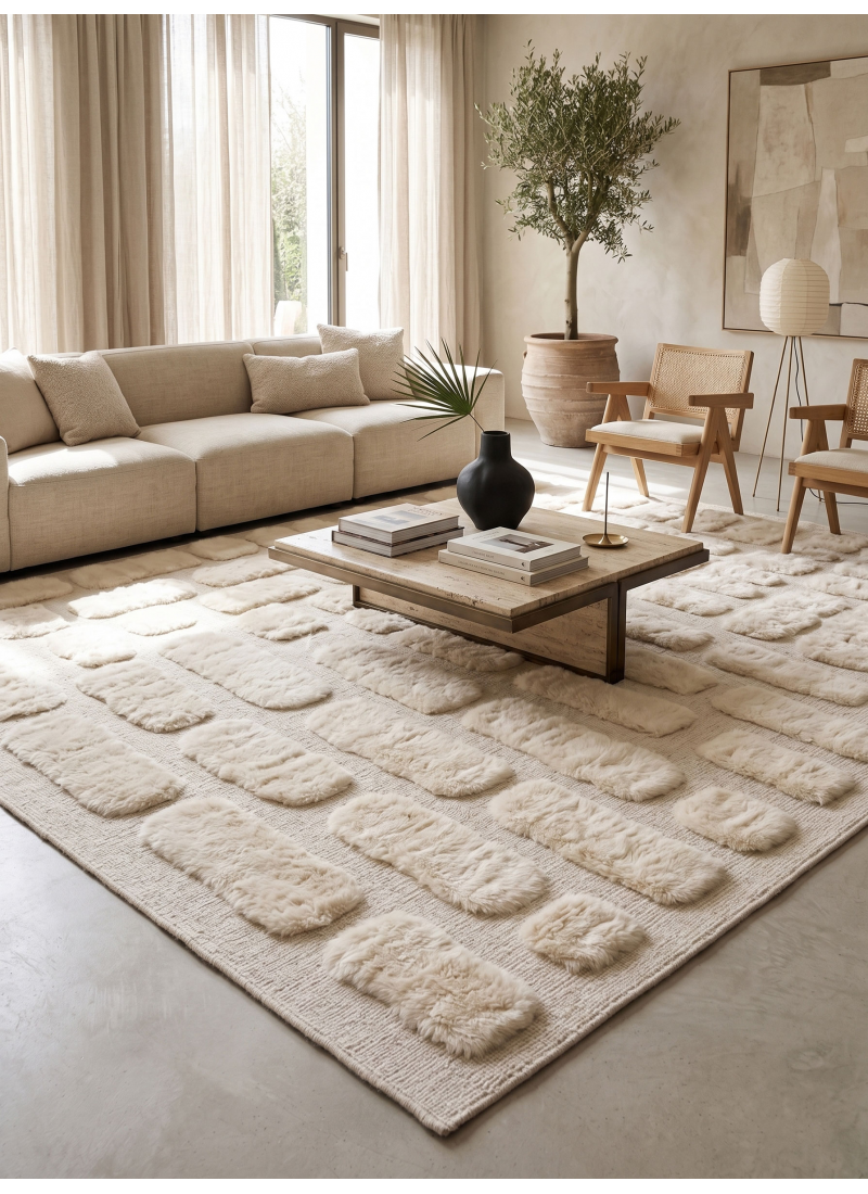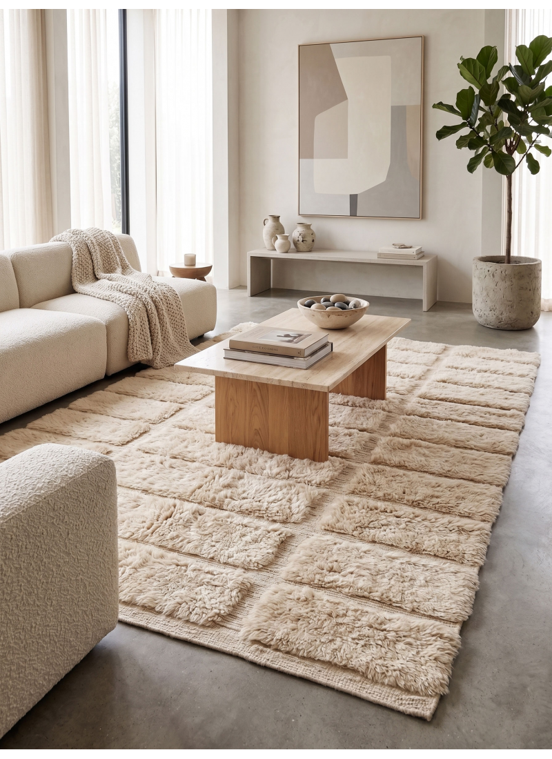 Supprimer du panier Liste de souhaits Tapis marocain texturé blanc cassé authentique – Motif géométrique en relief à motif de pilules À partir de 324 $ Sublimez votre intérieur avec ce tapis Mrirt marocain écru authentique, tissé à la main. Son motif oblong sculpté en 3D, réalisé en laine...