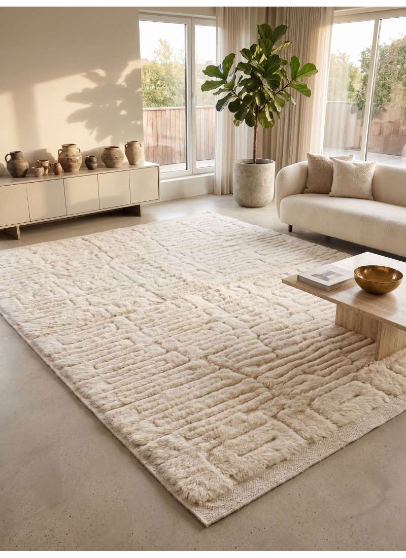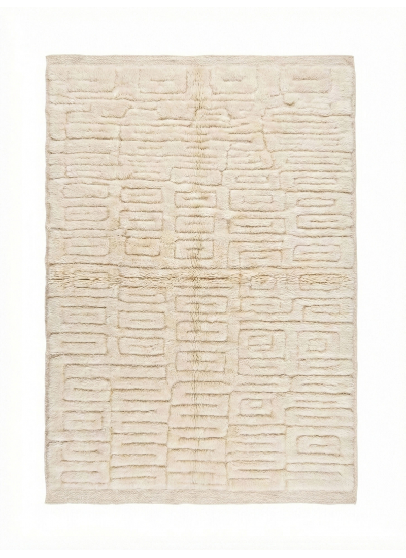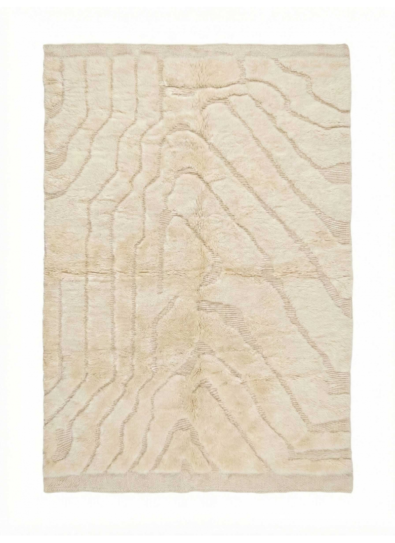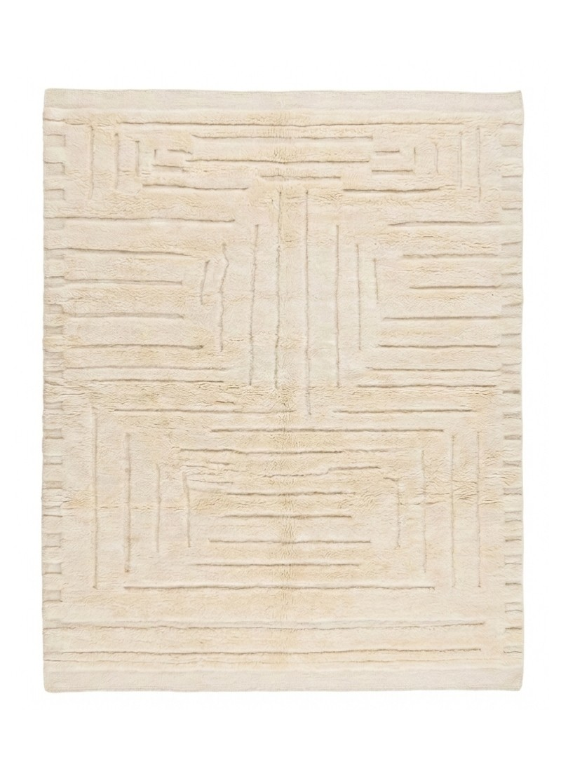 Supprimer du panier Liste de souhaits Tapis marocain Mrirt sculpté géométrique abstrait | Tapis en laine écru à reliefs variés À partir de 324 $