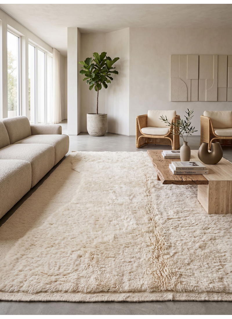 Supprimer du panier Liste de souhaits Tapis berbère Mrirt blanc cassé minimaliste à motif sculpté en relief. À partir de 324 $ Sublimez votre intérieur avec ce tapis Mrirt marocain écru authentique, tissé à la main. Confectionné en laine ultra-douce et orné d'un superbe...