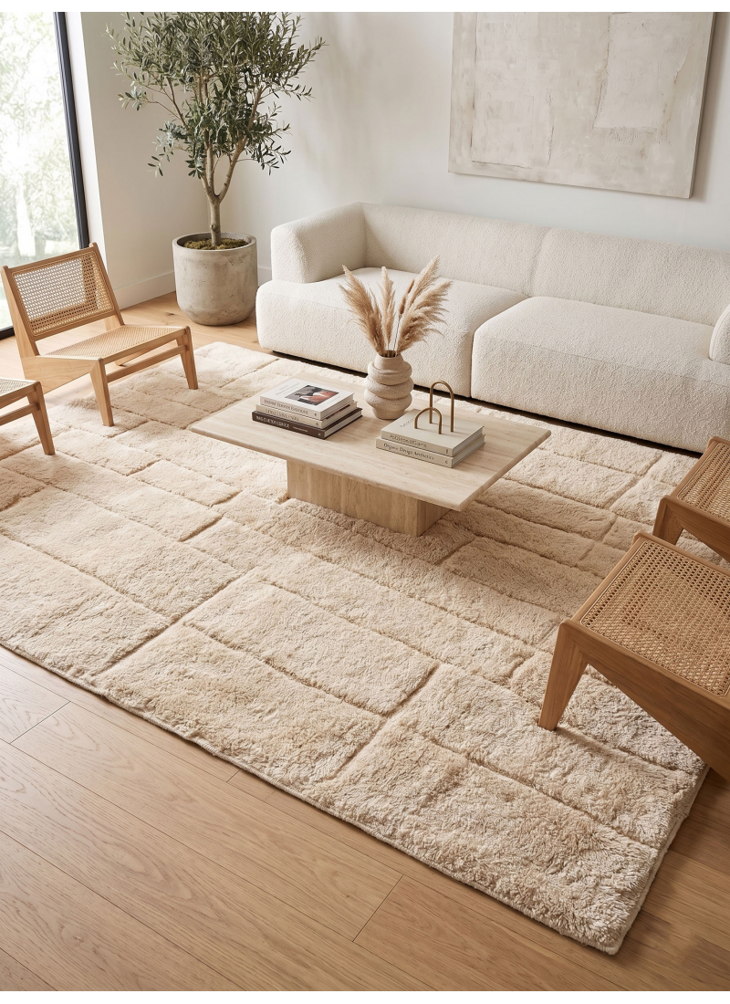 Supprimer du panier Liste de souhaits Tapis Mrirt marocain écru - Tapis en laine sculpté à blocs décalés À partir de 324 $ Sublimez votre intérieur avec ce tapis Mrirt marocain écru authentique, tissé à la main. Son motif à blocs décalés, subtilement sculpté en 3D...