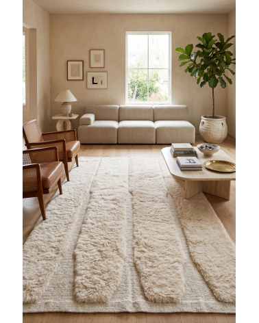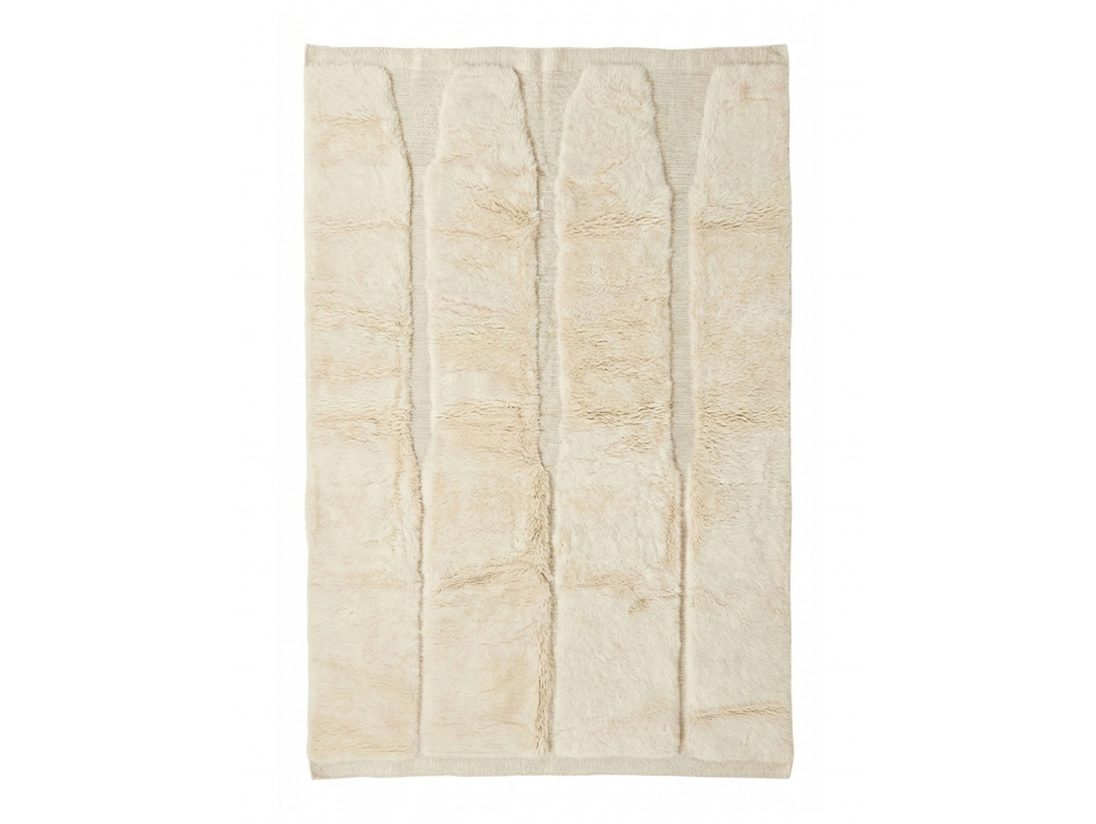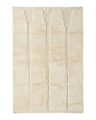 Tapis Mrirt marocain écru - Tapis en laine à piliers verticaux sculptés