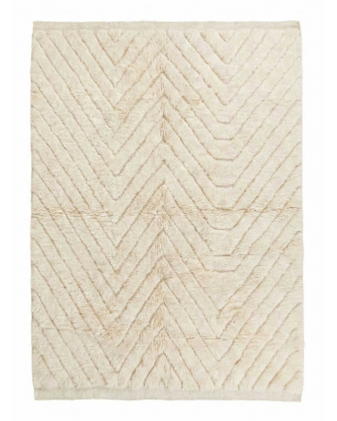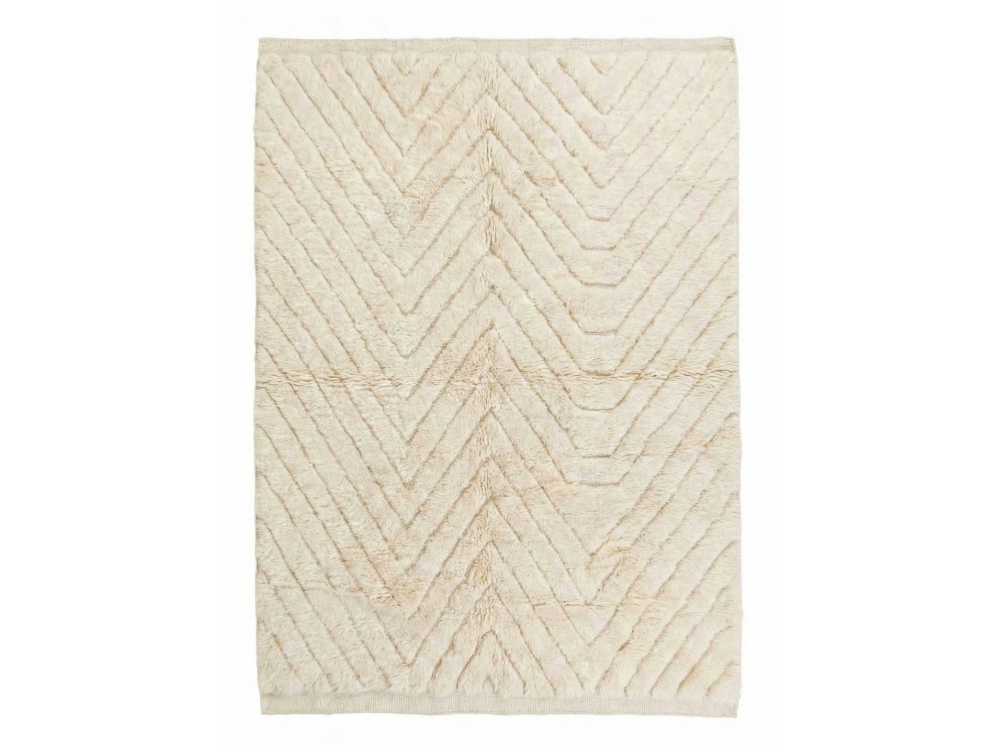 Ecru Moroccan Mrirt Rug - Carved Chevron Wool Carpet