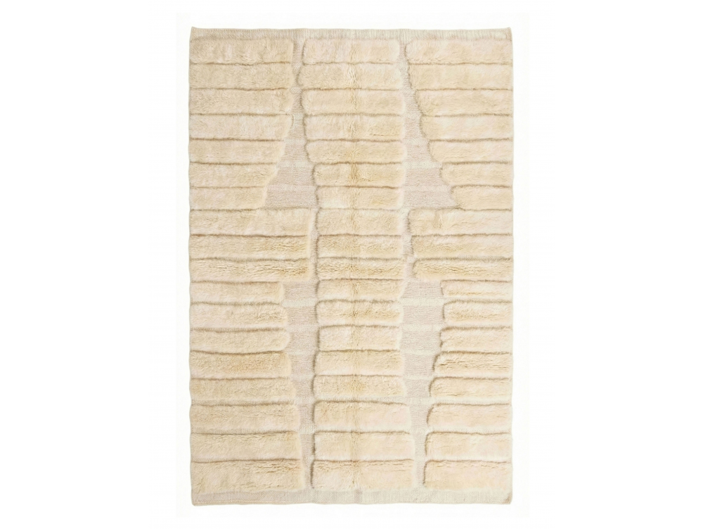 Ecru Moroccan Mrirt Rug - Carved Ribbed Column Wool Carpet