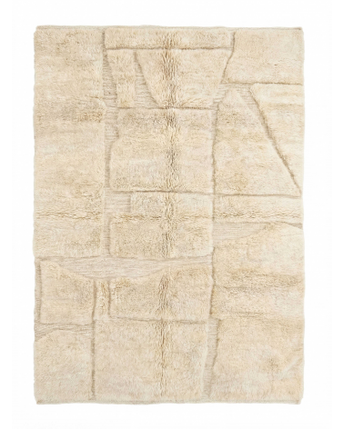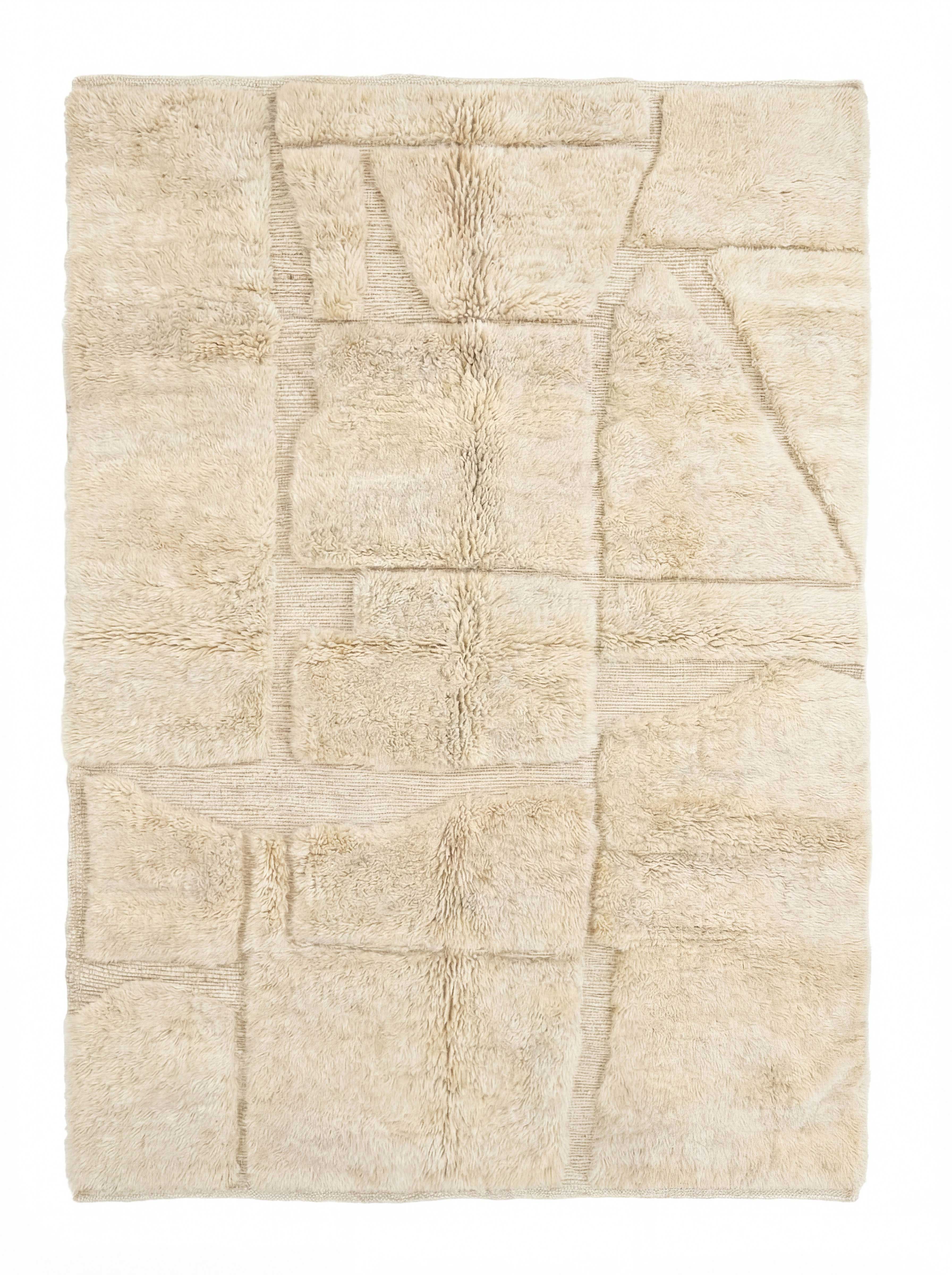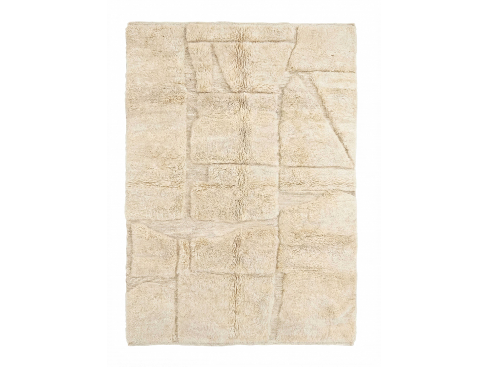 Tapis marocain Mrirt sculpté géométrique abstrait | Tapis en laine écru à reliefs variés
