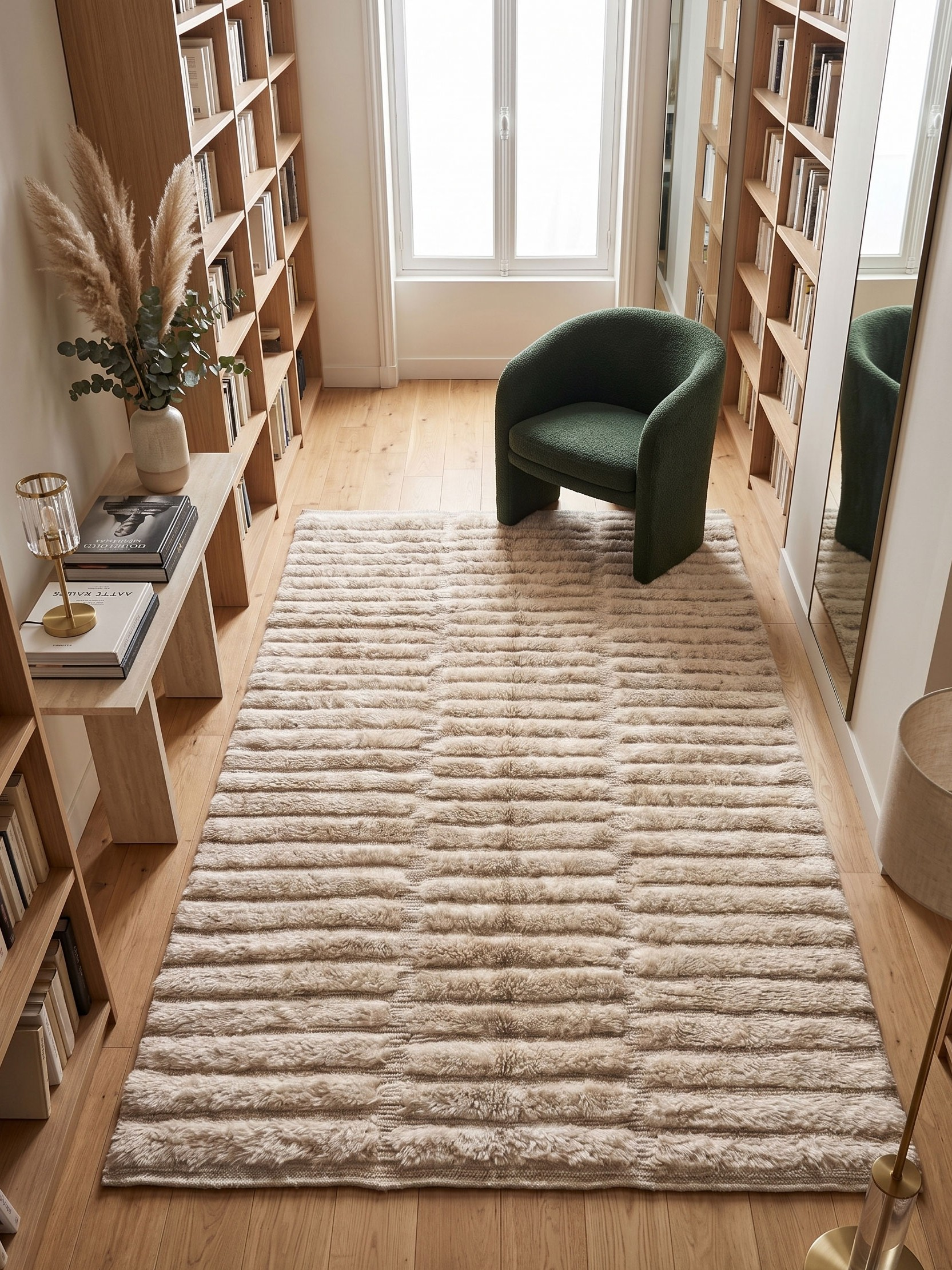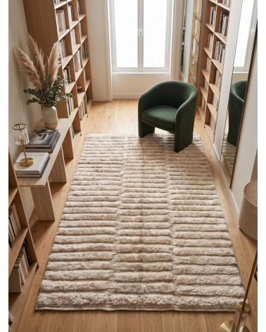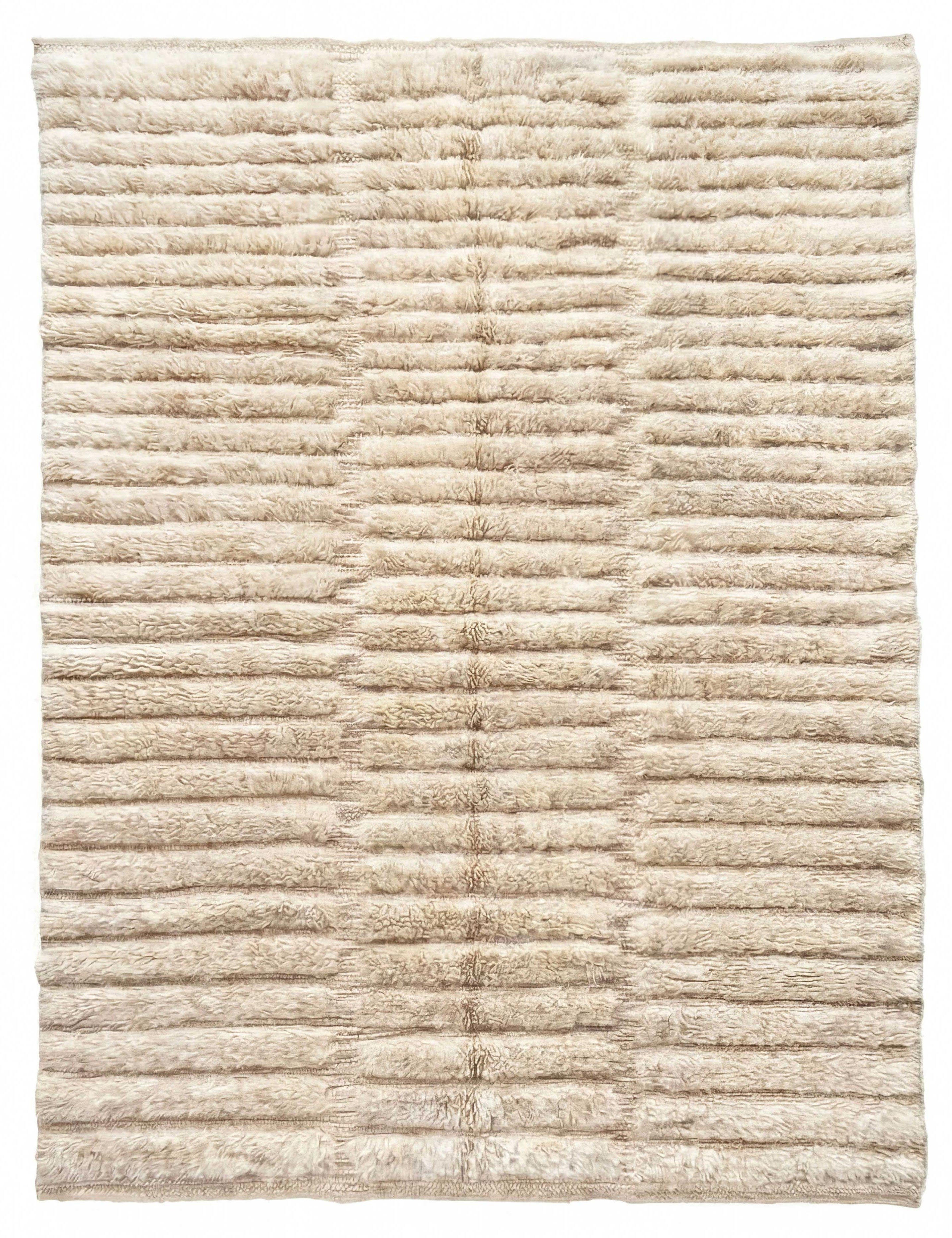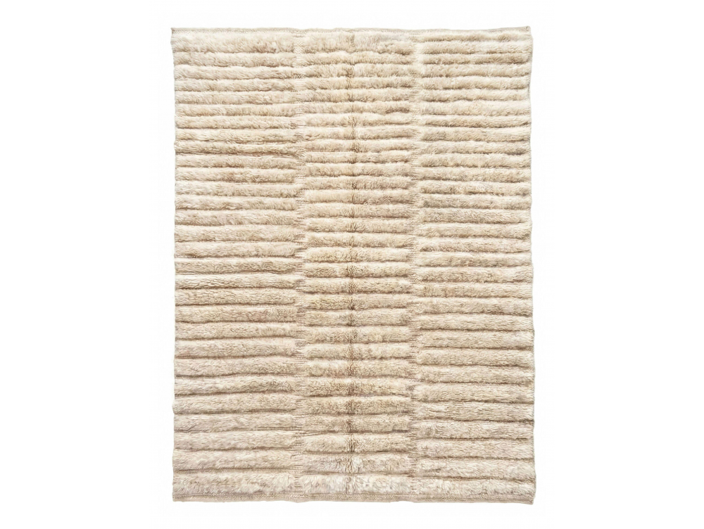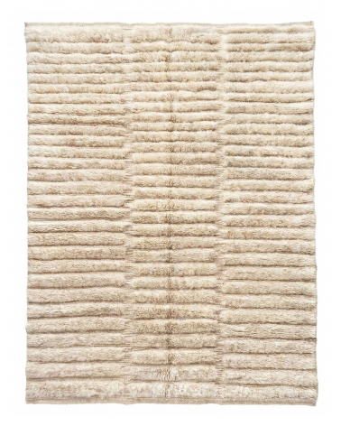 Tapis berbère Mrirt crème minimaliste moderne | Motif à rayures sculptées en 3D