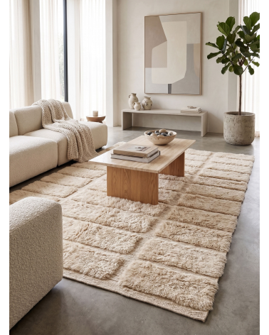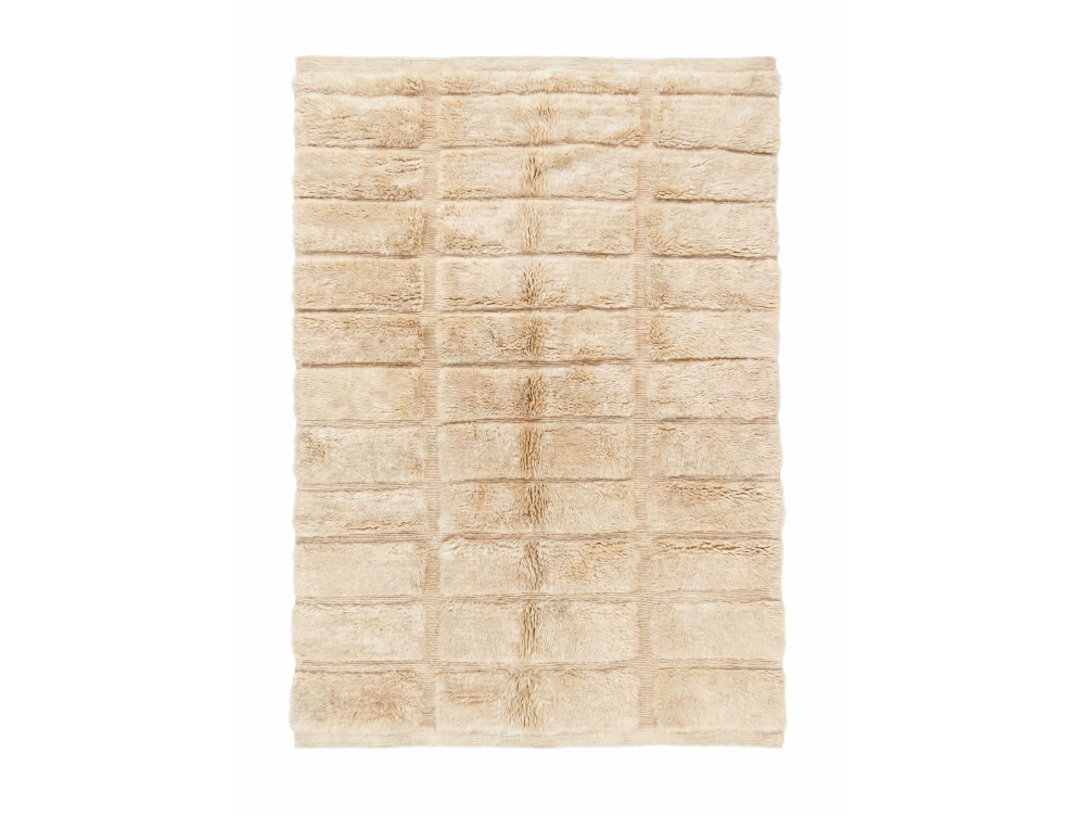 Tapis Mrirt marocain écru - Tapis en laine à motifs géométriques sculptés