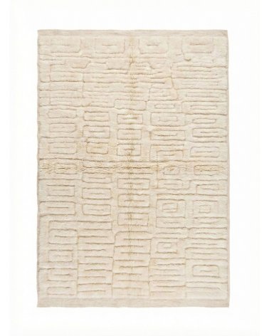 Transformez votre intérieur avec ce tapis Mrirt marocain écru authentique, tissé à la main. Son magnifique motif géométrique labyrinthique sculpté en 3D, réalisé en laine naturelle moelleuse, apporte une touche de sophistication minimaliste à votre décoration.