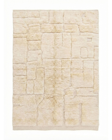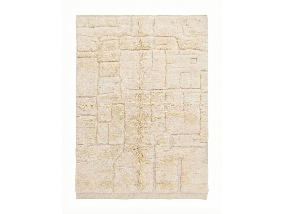 Sublimez votre intérieur avec ce tapis Mrirt marocain écru authentique, tissé à la main. Son magnifique motif patchwork abstrait sculpté en 3D, réalisé en laine naturelle moelleuse, offre une esthétique minimaliste et tactile.