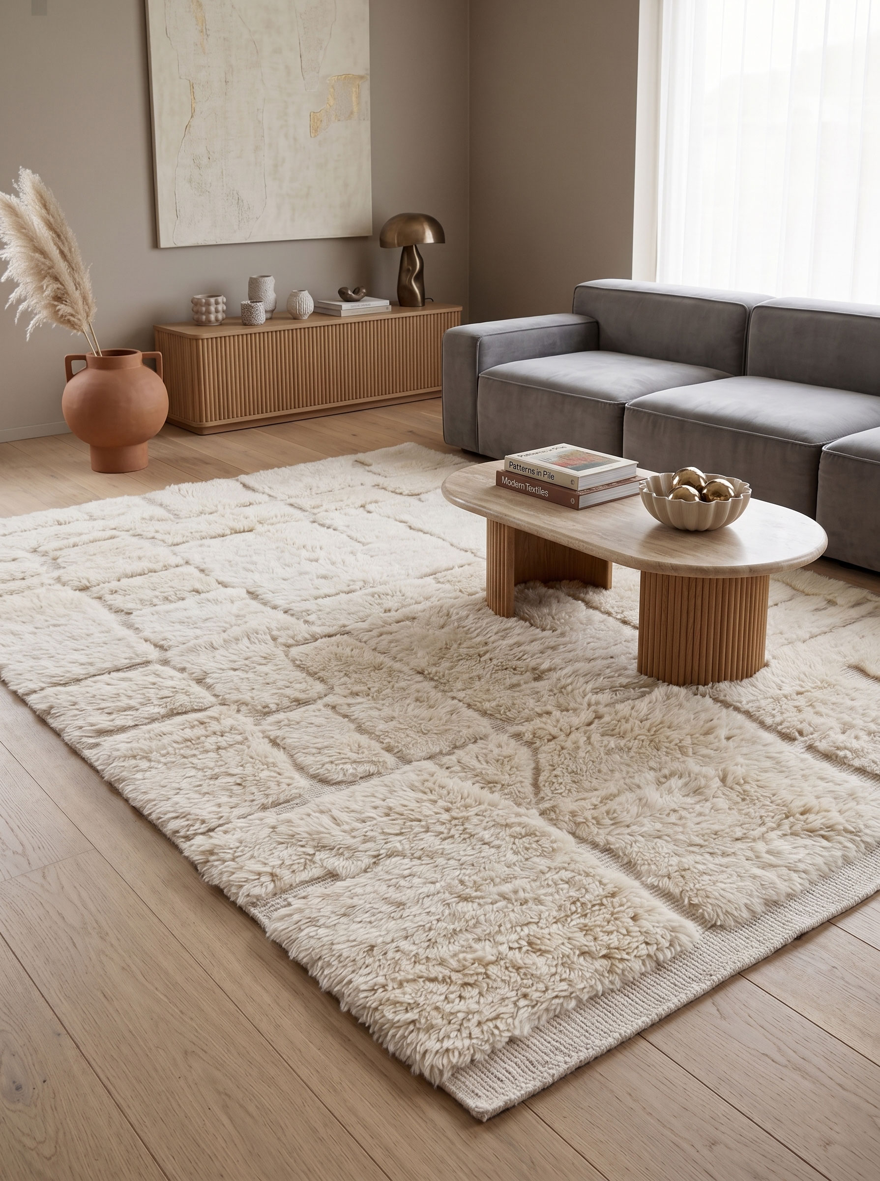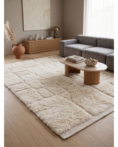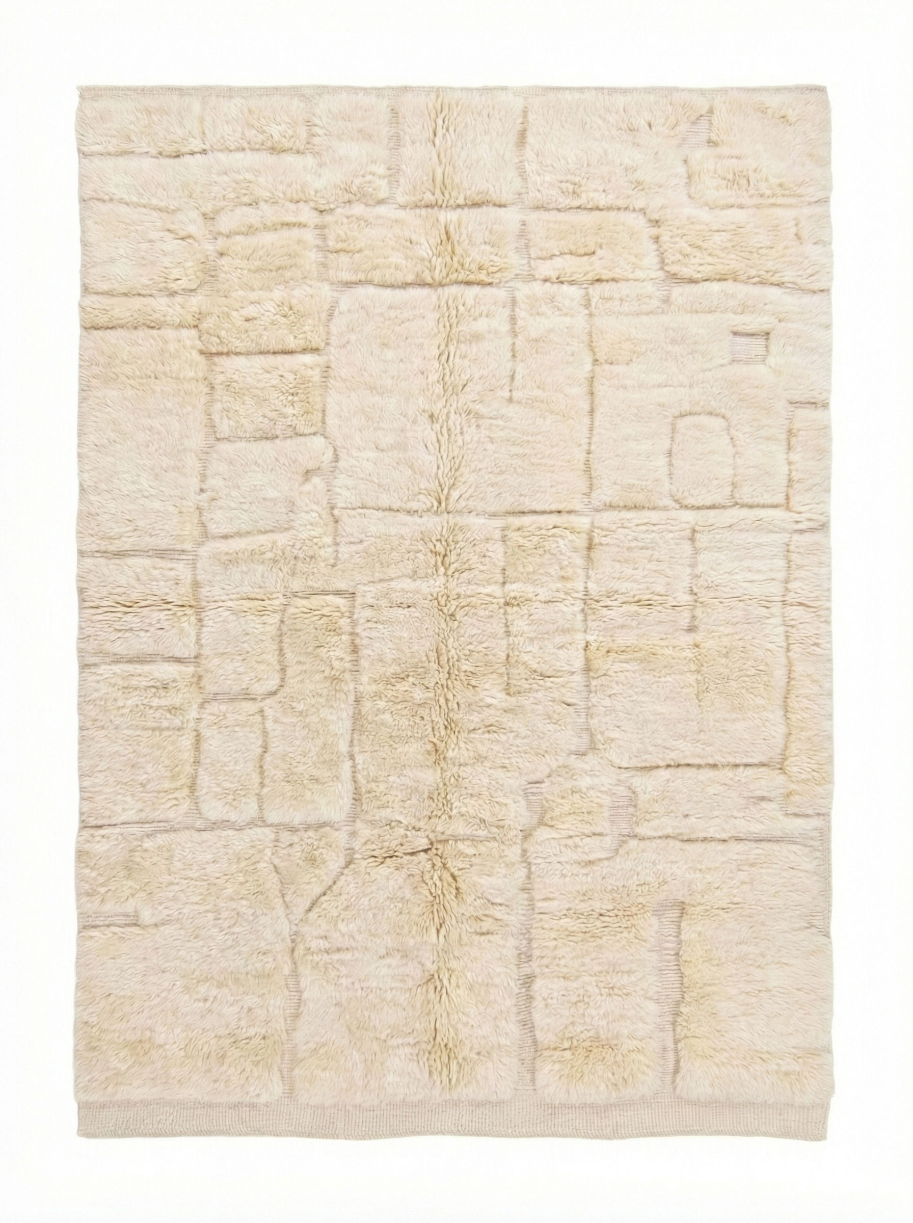 Tapis marocain texturé blanc cassé authentique – Motif géométrique en relief à poils mixtes