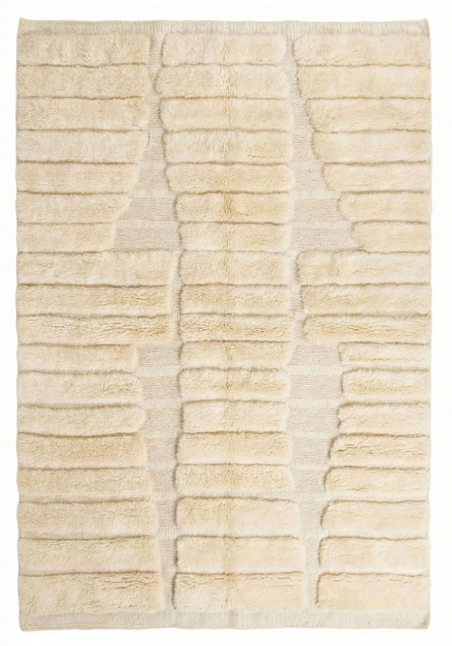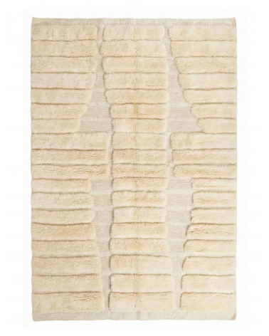 Tapis Mrirt marocain écru - Tapis en laine à colonnes côtelées sculptées