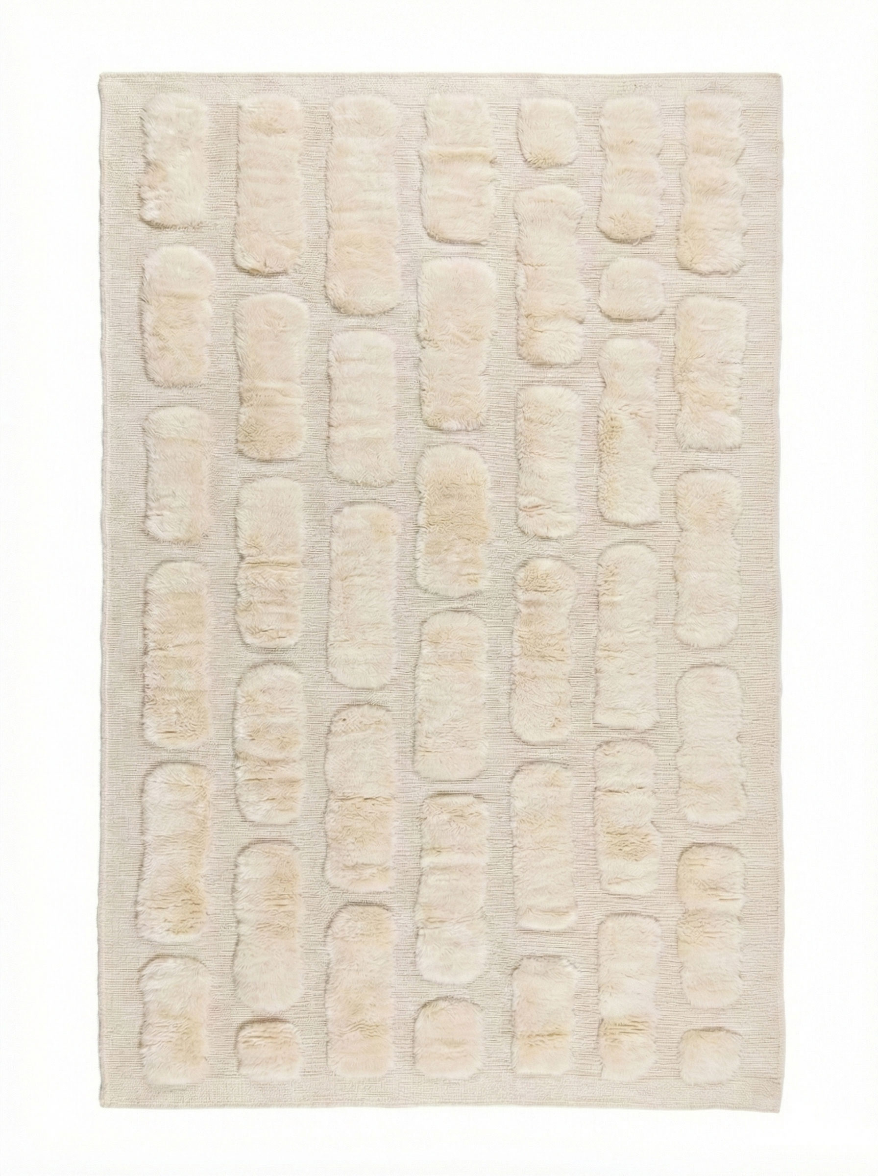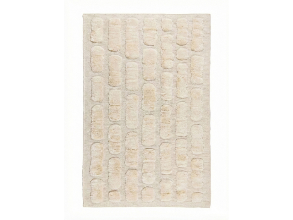 Sublimez votre intérieur avec ce tapis Mrirt marocain écru authentique, tissé à la main. Son motif oblong sculpté en 3D, réalisé en laine naturelle moelleuse, offre une esthétique moderne et tactile unique.